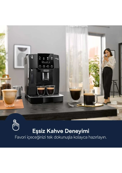 Kolay Kullanım: Sade ve dokunmatik arayüzü sayesinde espresso, kahve, latte macchiato veya sıcak su gibi temel içecekleri tek dokunuşla seçebilirsiniz.